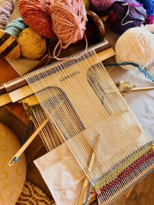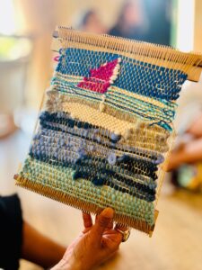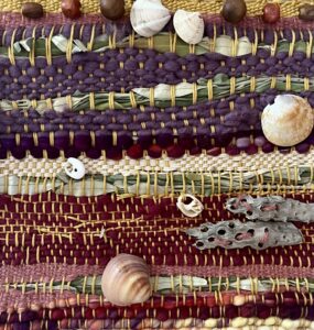 • Optional: bring beads, shells, twigs, old (clean) cotton t-shirts (for cutting), or other items to weave into your tapestry